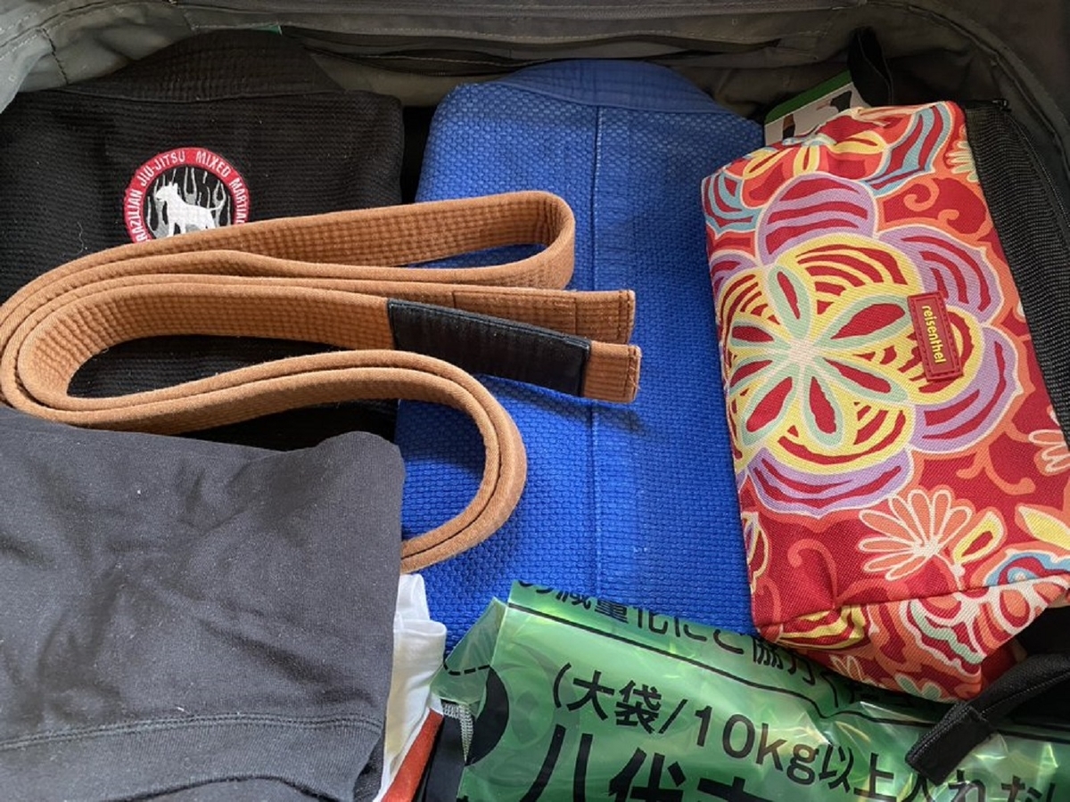 感謝を込めてロビーにあった畳、トレーニング器具、漁師の友達からもらったロープ。
