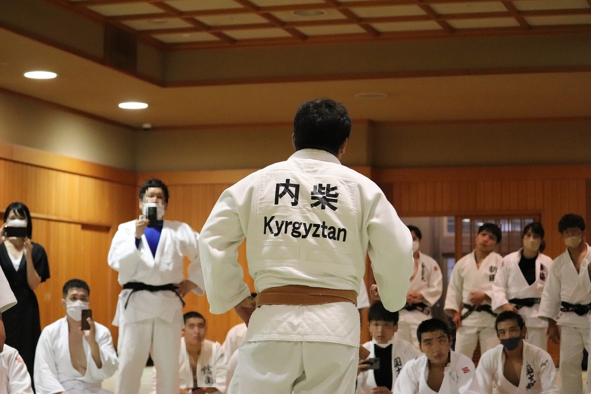キルギス共和国から教え子が職業研修と柔道の修業を兼ね、3カ月間来日中。