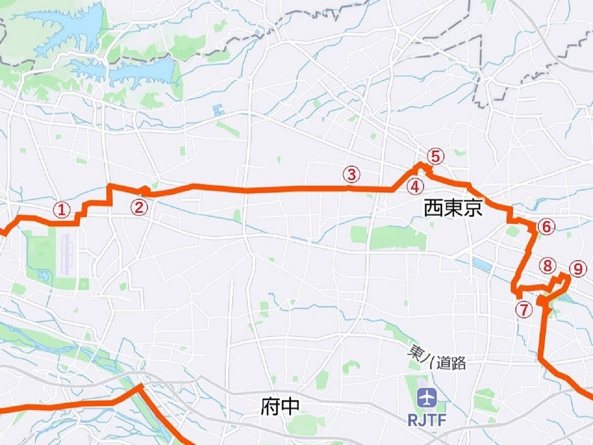 4日目後半は、まず東の立川方面へ向かっていく。立川駅の周りだとスタンプスポットも多そうだが、北側を走る青梅街道沿いには前回取り損ねたエリアがあるので、そちらを目指すことに。